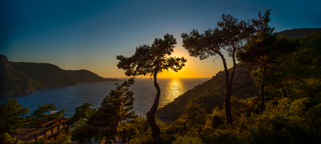 Orman ve denizin kesintisiz uyum içinde buluştuğu canlı bir manzara.